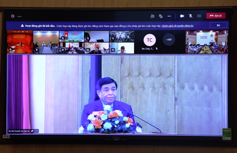 Bộ trưởng Bộ Bộ KH&ĐT Nguyễn Chí Dũng phát biểu tại hội nghị. (Ảnh chụp màn hình).