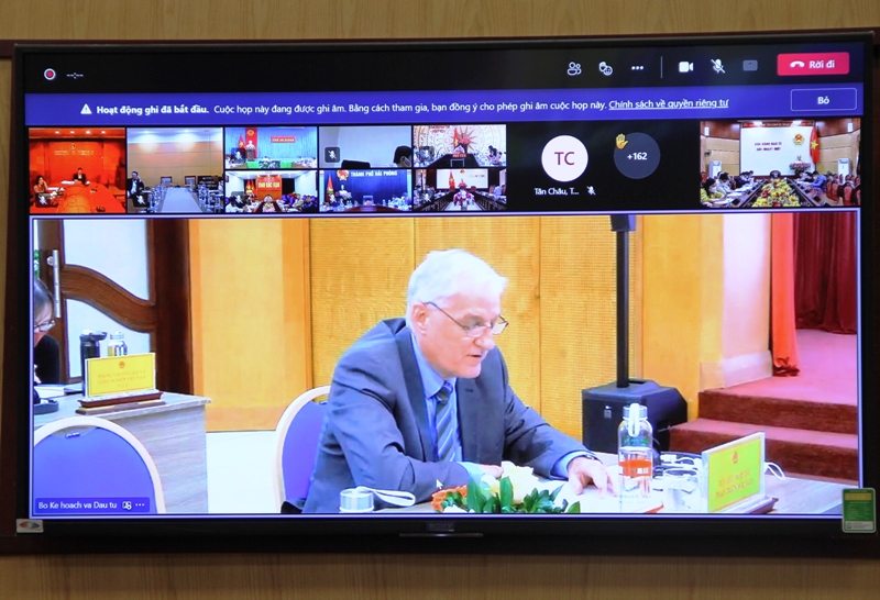 Tham dự tại đầu cầu Bộ KH&ĐT có đại diện các bộ, ngành, tổ chức quốc tế liên quan. Tại điểm cầu Thanh Hóa có Giám đốc Sở KH&ĐT cùng đại diện các sở, ngành, đơn vị liên quan.