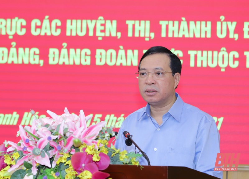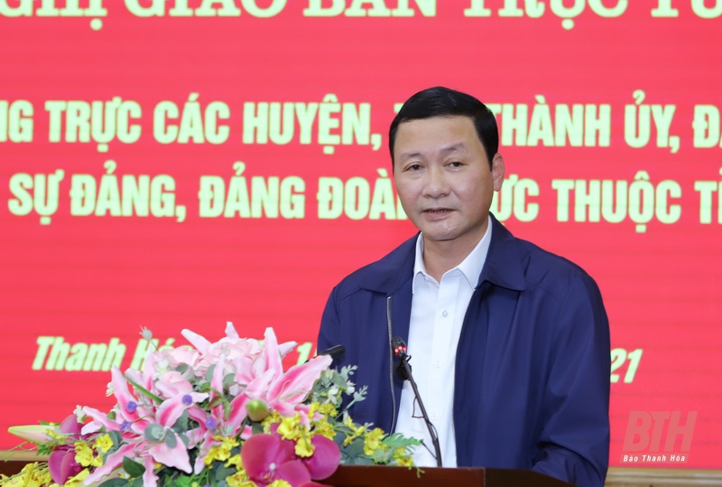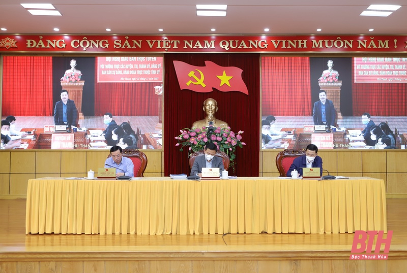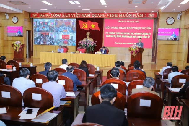 Ngày 15-11, Thường trực Tỉnh ủy Thanh Hóa đã tổ chức hội nghị giao ban trực tuyến với thường trực các huyện, thị, thành ủy, đảng ủy, ban cán sự, đảng đoàn trực thuộc để giải quyết các khó khăn, vướng mắc ở cơ sở năm 2021. Các đồng chí: Đỗ Trọng Hưng, Ủy viên Trung ương Đảng, Bí thư Tỉnh ủy, Chủ tịch HĐND tỉnh; Lại Thế Nguyên, Phó Bí thư Thường trực Tỉnh ủy, Trưởng đoàn ĐBQH tỉnh; Đỗ Minh Tuấn, Phó Bí thư Tỉnh ủy, Chủ tịch UBND tỉnh chủ trì hội nghị.