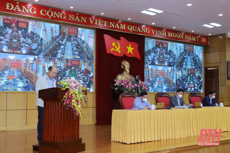 Lãnh đạo huyện Như Thanh phát biểu tại hội nghị theo hình thức trực tuyến để phản ánh những vấn đề phát sinh tại cơ sở và đề xuất kiến nghị