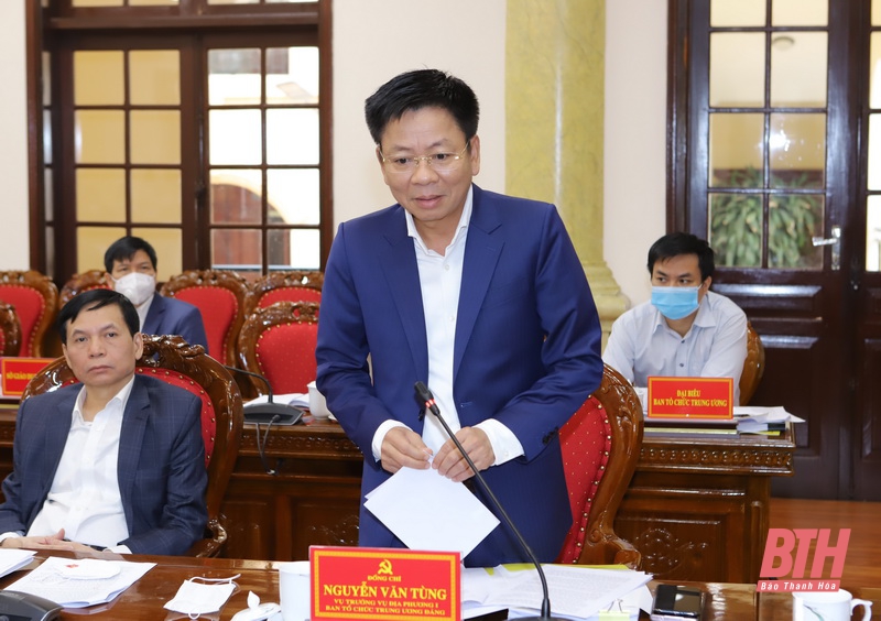 Đồng chí Nguyễn Văn Tùng, Vụ trưởng vụ địa phương I, Ban Tổ chức Trung ương phát biểu tại buổi làm việc.