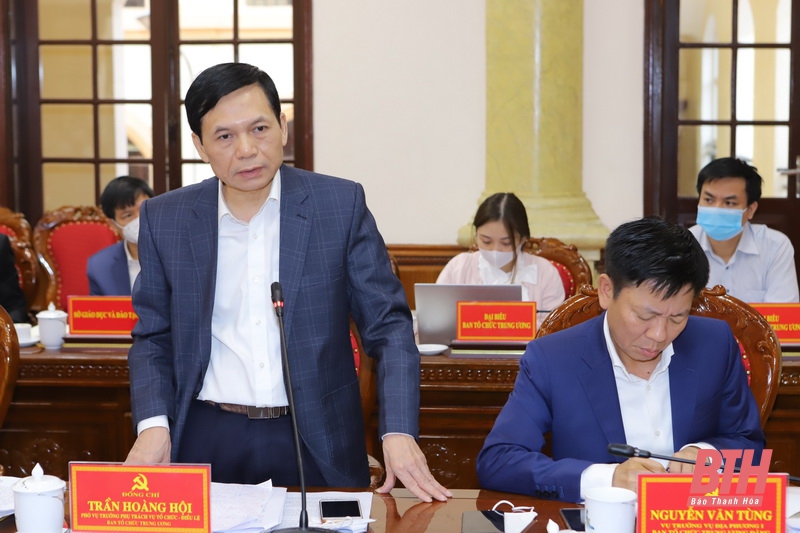 Đồng chí Trần Hoàng Hội, Phó Vụ trưởng phụ trách Vụ Tổ chức - Điều lệ, Ban Tổ chức Trung ương phát biểu tại buổi làm việc.