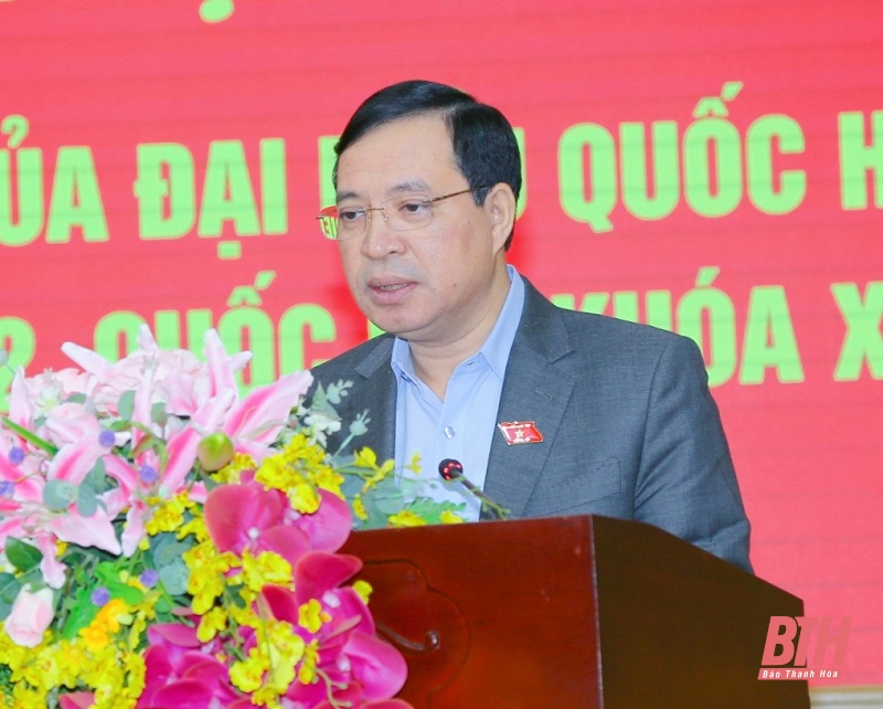 Đại biểu Quốc hội Lại Thế Nguyên, Phó Bí thư Thường trực Tỉnh ủy, Trưởng đoàn ĐBQH tỉnh cũng đã thông tin thêm đến cử tri kết quả Kỳ họp thứ 2, Quốc hội khóa XV; việc Quốc hội thông qua Nghị quyết về một số cơ chế, chính sách đặc thù phát triển tỉnh Thanh Hóa.