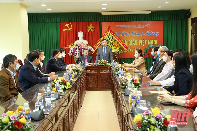 Đồng chí Lại Thế Nguyên, Phó Bí thư Thường trực Tỉnh ủy, Trưởng đoàn ĐBQH tỉnh phát biểu chúc mừng Trường Đại học Hồng Đức nhân Ngày Nhà giáo Việt Nam.