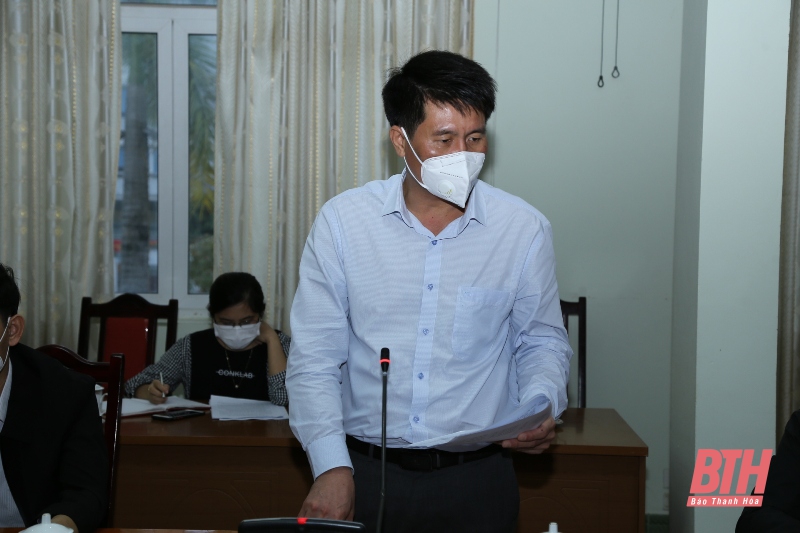 Đại diện lãnh đạo thị xã Bỉm Sơn báo cáo tình hình dịch bệnh trên địa bàn.