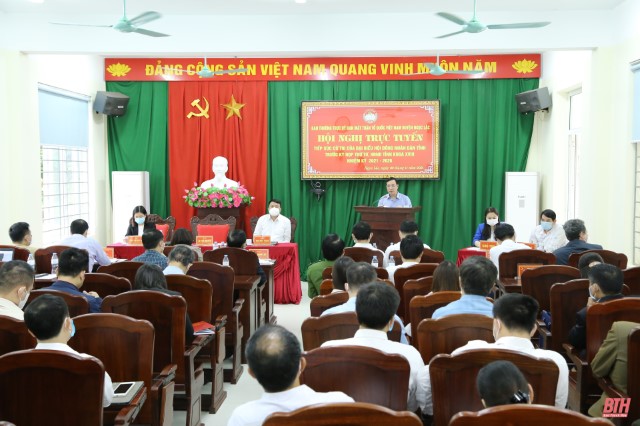 Ngày 2-11, Tổ đại biểu HĐND tỉnh khóa XVIII, gồm các đại biểu: Lại Thế Nguyên, Phó Bí thư Thường trực Tỉnh ủy, Trưởng đoàn ĐBQH tỉnh; Bùi Huy Toàn, Phó Bí thư Huyện ủy, Chủ tịch UBND huyện Ngọc Lặc; Phạm Thị Ngọc Anh, bác sĩ Bệnh viện Đa khoa khu vực Ngọc Lặc, đã có buổi tiếp xúc cử tri bằng hình thức trực tuyến từ điểm cầu hội trường UBND huyện Ngọc Lặc đến 21 điểm cầu các xã, thị trấn trên địa bàn huyện.