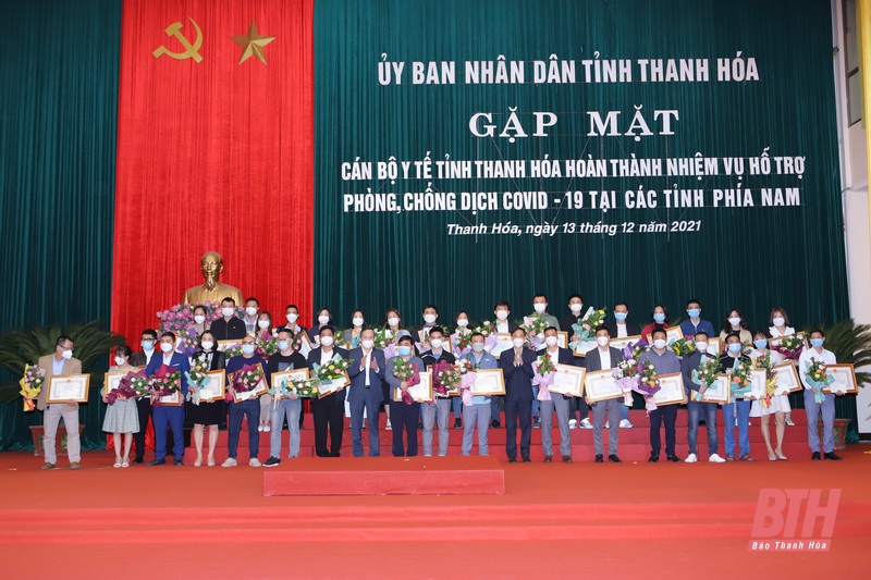 Tại buổi gặp mặt, đồng chí Đỗ Trọng Hưng, Ủy viên Trung ương Đảng, Bí thư Tỉnh ủy, Chủ tịch HĐND tỉnh, Trưởng Ban Chỉ đạo phòng, chống dịch COVID -19 tỉnh và các đồng chí lãnh đạo tỉnh đã trao Bằng khen của Chủ tịch UBND tỉnh cho 231 cá nhân đã có thành tích xuất sắc trong công tác hỗ trợ phòng, chống dịch COVID-19 tại các tỉnh phía Nam.