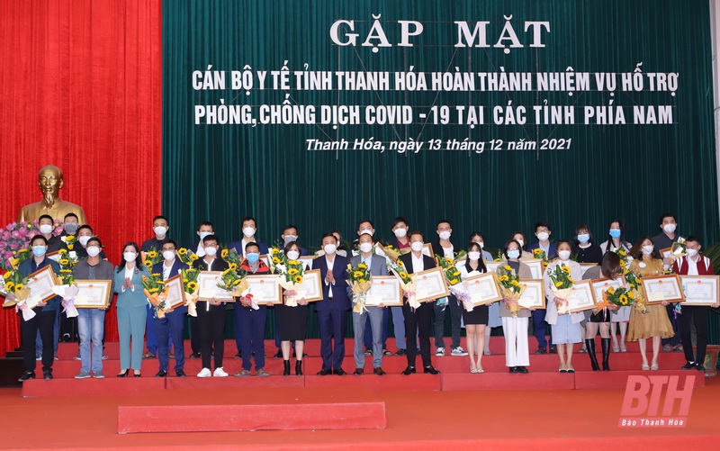 Sáng 13-12, UBND tỉnh Thanh Hoá đã tổ chức gặp mặt cán bộ y tế hoàn thành nhiệm vụ hỗ trợ phòng, chống dịch COVID-19 tại các tỉnh phía Nam. Đồng chí Đỗ Trọng Hưng, Ủy viên Trung ương Đảng, Bí thư Tỉnh ủy, Chủ tịch HĐND tỉnh, Trưởng Ban Chỉ đạo phòng, chống dịch COVID -19 tỉnh dự và phát biểu chỉ đạo.