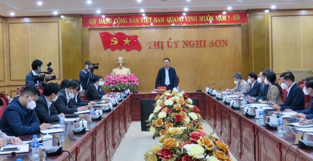 Sau khi kiểm tra công tác phòng, chống dịch COVID-19 tại một số doanh nghiệp, đồng chí Phó Bí thư Tỉnh ủy Trịnh Tuấn Sinh và đoàn công tác đã làm việc với Ban Chỉ đạo phòng, chống dịch COVID-19 thị xã Nghi Sơn.