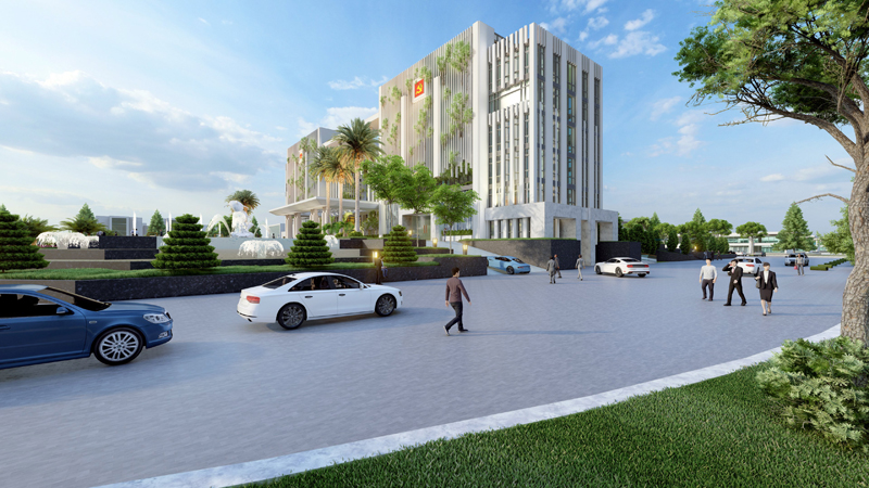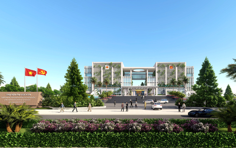 Dự án trụ sở làm việc của Thành ủy, HĐND, UBND và các khối đoàn thể, đơn vị sự nghiệp TP Sầm Sơn được thực hiện theo các Nghị quyết số 161/NQ-HĐND, ngày 4-4-2019; số 401/NQ-HĐND, ngày 26-4-2021 của HĐND tỉnh Thanh Hóa. Quy mô đầu tư của công trình gồm: Nhà làm việc hợp khối cao 7 tầng + 1 tầng trệt, tổng diện tích sàn khoảng 14.687 m2 (bao gồm cả khu để xe tại tầng trệt, nhà hội trường 450 chỗ, nhà ăn 180 chỗ); các công trình phụ trợ (nhà bảo vệ, nhà để xe, cổng, tường rào); hạ tầng kỹ thuật (san nền, sân đường nội bộ, cấp điện, cấp thoát nước ngoài nhà, cây xanh) và đường giao thông vào trụ sở; đầu tư mới trang thiết bị hạ tầng kỹ thuật (trạm biến áp, máy bơm, PCCC,...), nhà hội trường, nhà ăn; đầu tư bổ sung trang thiết bị nhà làm việc.