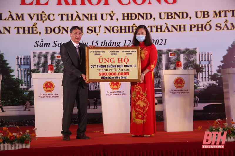 Nhân dịp này liên danh nhà thầu đã trao tặng 500 triệu đồng vào Quỹ phòng, chống dịch COVID-19 của TP Sầm Sơn.