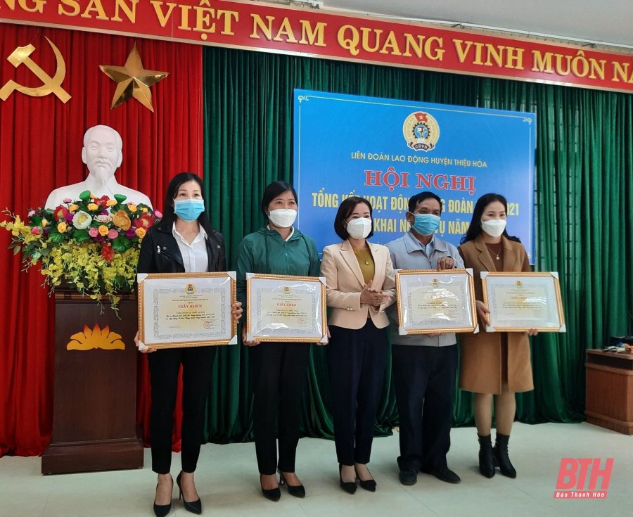 Năm 2021 do ảnh hưởng của dịch bệnh COVID-19 nhưng các cấp công đoàn trên địa bàn huyện Thiệu Hóa vẫn triển khai thực hiện tốt các kế hoạch, phong trào thi đua do công đoàn cấp trên phát động. Nổi bật là các hoạt động chăm lo, bảo vệ quyền, lợi ích cho đoàn viên, người lao động. Các cấp công đoàn đã trao hàng trăm suất quà cho đoàn viên, người lao động trị giá trên 450 triệu đồng; trao 35 triệu đồng hỗ trợ xây dựng “Mái ấm công đoàn” cho đoàn viên khó khăn.