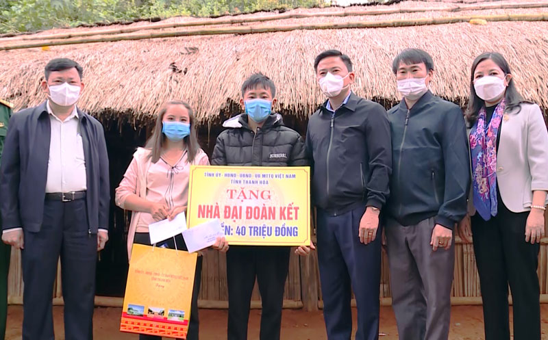 Bí thư Tỉnh ủy Thanh Hóa (thứ 3 từ phải sang) cùng Mặt trận Tổ quốc tỉnh trao tiền hỗ trợ xây dựng nhà Đại đoàn kết cho hộ nghèo ở bản Kéo Hượn, xã Nhi Sơn, huyện Mường Lát.