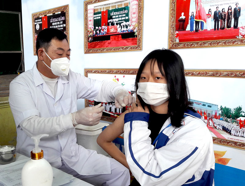 Nhân viên y tế tiêm vaccine phòng Covid-19 cho học sinh ở Thanh Hóa.