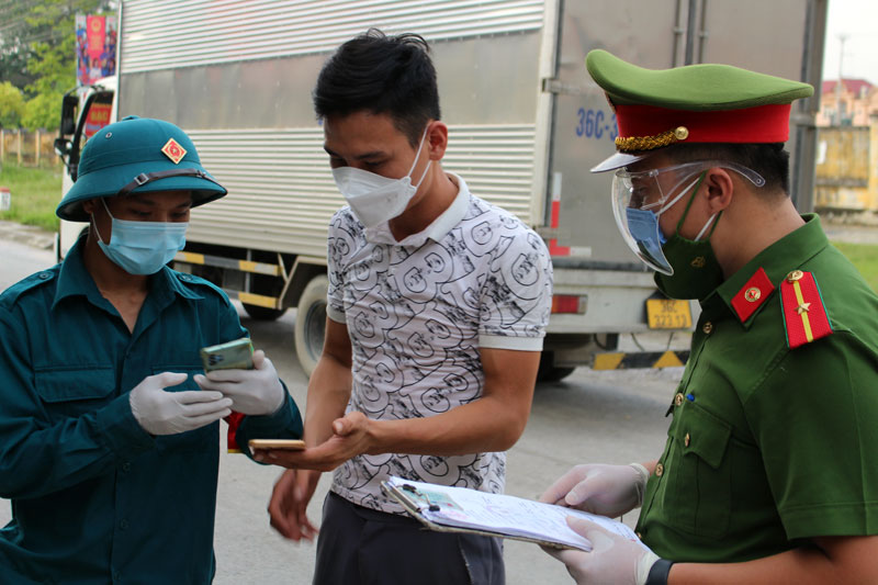 Lực lượng chức năng Thanh Hóa kiểm tra, quét mã QR người điều khiển xe cơ giới từ vùng có yếu tố dịch tễ liên quan về huyện Quảng Xương.