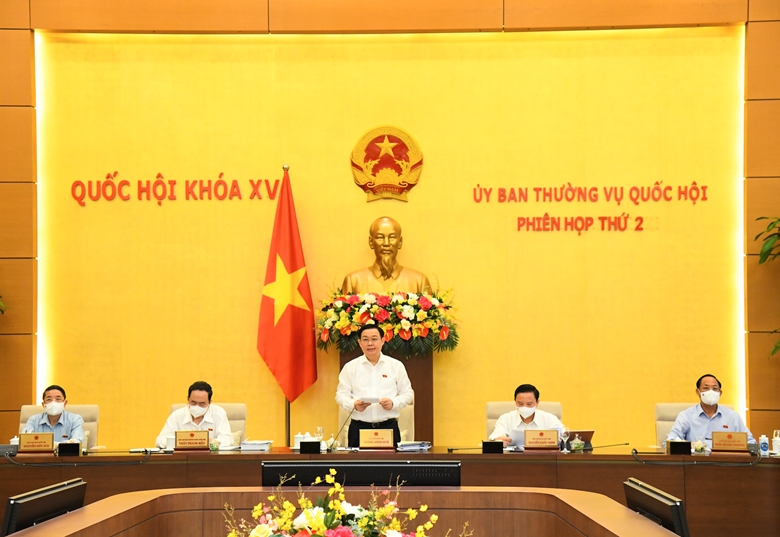 Chủ tịch Quốc hội nêu rõ, tại phiên họp lần này Ủy ban Thường vụ Quốc hội sẽ xem xét, cho ý kiến và quyết định liên quan đến 5 nhóm nhiệm vụ cơ bản. Cụ thể, Ủy ban Thường vụ Quốc hội sẽ cho ý kiến về dự án Luật Thi đua, khen thưởng (sửa đổi); cho ý kiến về báo cáo của Chính phủ về tình hình thực hiện các chế độ, chính sách về bảo hiểm xã hội, quản lý và sử dụng quỹ bảo hiểm xã hội năm 2020; xem xét báo cáo tình hình giải quyết, trả lời kiến nghị cử tri; kết quả tiếp công dân, tiếp nhận, xử lý đơn thư và giám sát việc giải quyết khiếu nại, tố cáo của công dân gửi đến Quốc hội (tháng 7/2021). Ủy ban Thường vụ Quốc hội tổng kết Kỳ họp thứ nhất, Quốc hội khóa XV và cho ý kiến bước đầu về việc chuẩn bị Kỳ họp thứ 2, Quốc hội khóa XV.