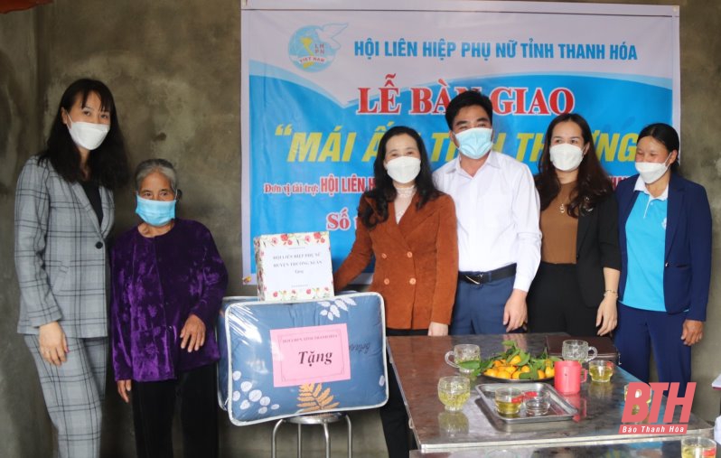 Tại huyện Thường Xuân Hội LHPN tỉnh phối hợp với Hội Doanh nhân trẻ, Hội Liên hiệp Thanh niên tỉnh bàn giao Mái ấm tình thương cho bà Hoàng Thị Thu ở thôn 1, xã Thọ Thanh có hoàn cảnh đặc biệt khó khăn với kinh phí hỗ trợ xây dựng 70 triệu đồng.