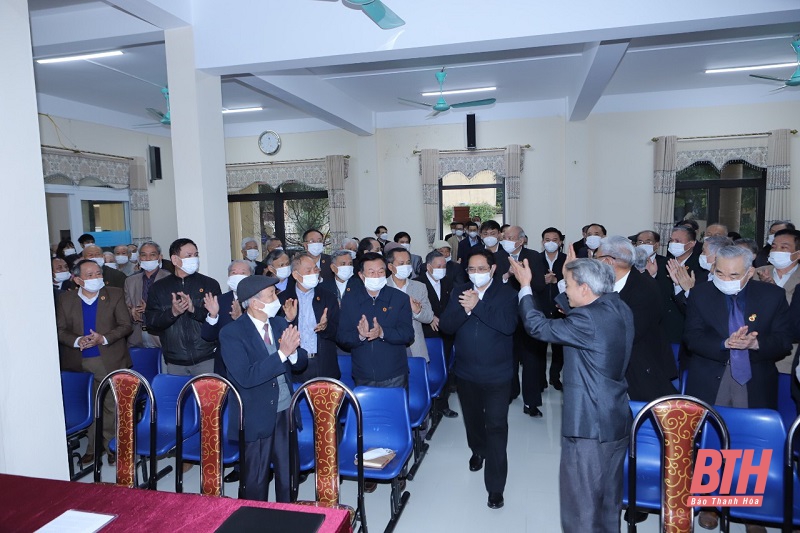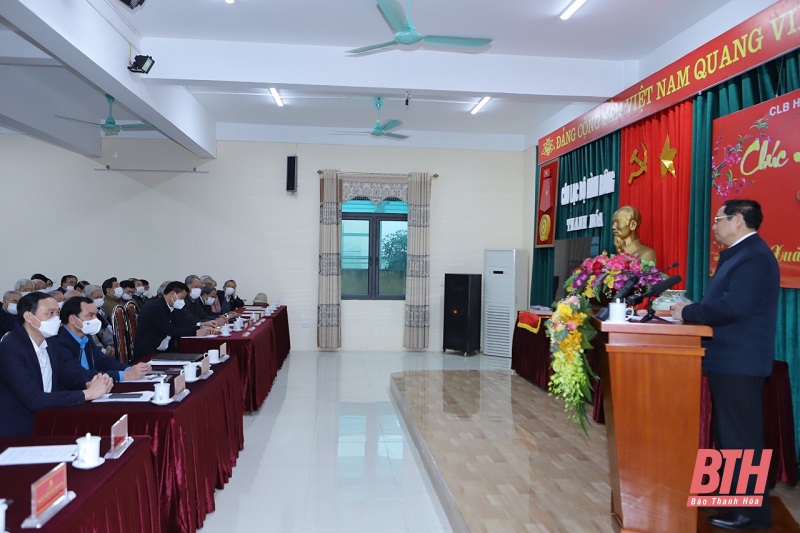 Thủ tướng Chính phủ Phạm Minh Chính nói chuyện, chúc Tết hội viên CLB Hàm Rồng.