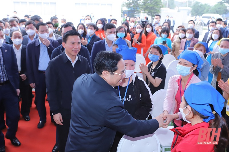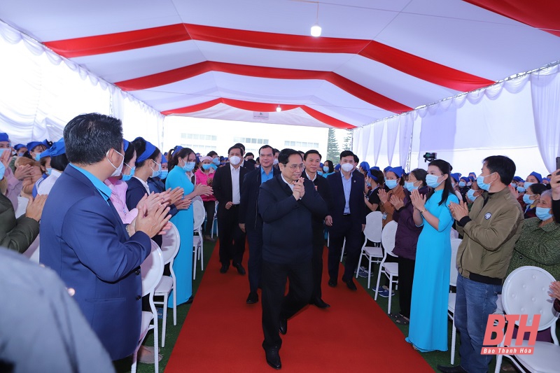 Thủ tướng Chính phủ Phạm Minh Chính đến thăm, chúc Tết công nhân lao động Công ty TNHH Sakurai Việt Nam tại Khu Công nghiệp Lễ Môn (TP Thanh Hoá)