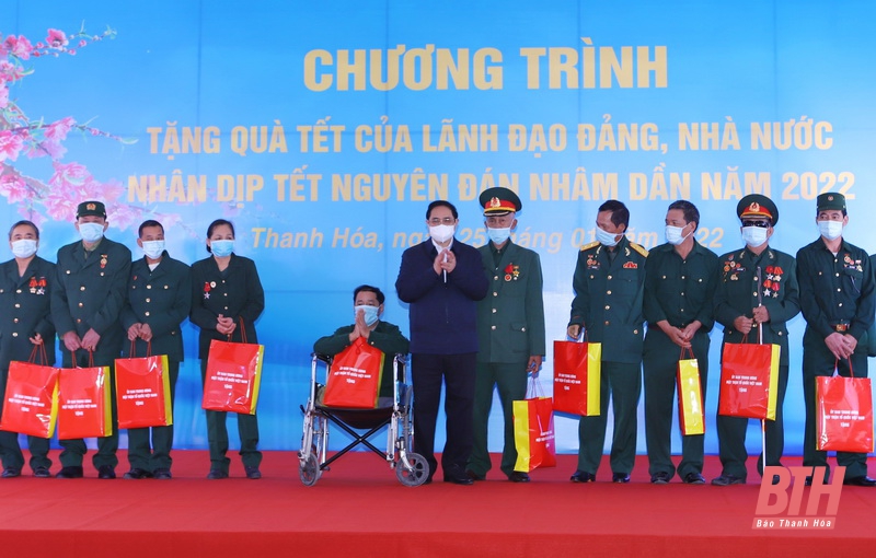 Thủ tướng Phạm Minh Chính tặng quà Tết cho thương bệnh binh, người có công với cách mạng tỉnh Thanh Hóa.
