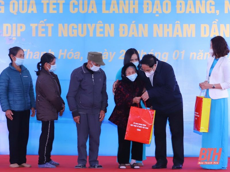 Cùng với việc ghi nhận những kết quả đạt được về phát triển kinh tế - xã hội, quốc phòng – an ninh, văn hóa – xã hội, công tác xây dựng Đảng, Thủ tướng Chính phủ Phạm Minh Chính đánh giá cao công tác chuẩn bị của các cấp, các ngành, các địa phương tỉnh Thanh Hóa trong việc chăm lo, bảo đảm cho Nhân dân, công nhân, người lao động, gia đình chính sách, hộ nghèo được đón Tết Nguyên đán Nhâm Dần với tinh thần vui tươi, lành mạnh, an toàn, tiết kiệm, nghĩa tình.