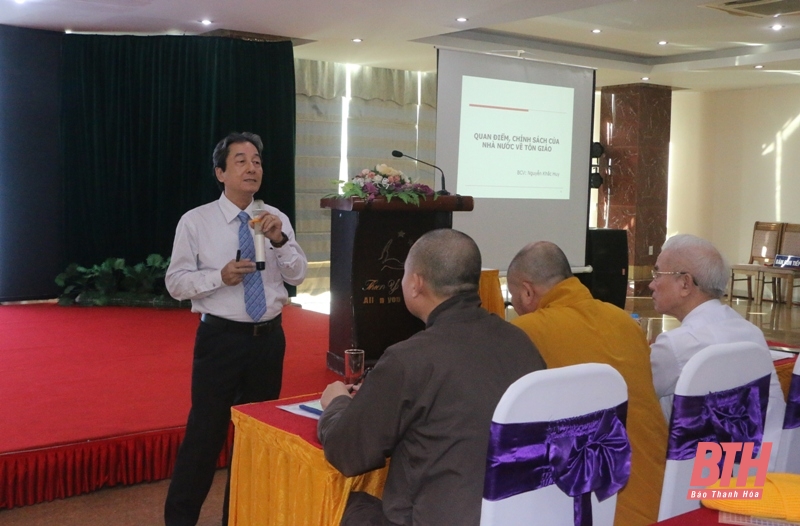 Tại hội nghị, các đại biểu đã được nghe báo cáo viên Nguyễn Khắc Huy, nguyên Vụ Trưởng vụ Pháp chế - Thanh tra, Ban Tôn giáo Chính phủ truyền đạt thông tin về tình hình tín ngưỡng, tôn giáo và pháp luật về tín ngưỡng, tôn giáo; các quy định của pháp luật về đất đai, xây dựng và quy định khác liên quan đến hoạt động tín ngưỡng, tôn giáo.