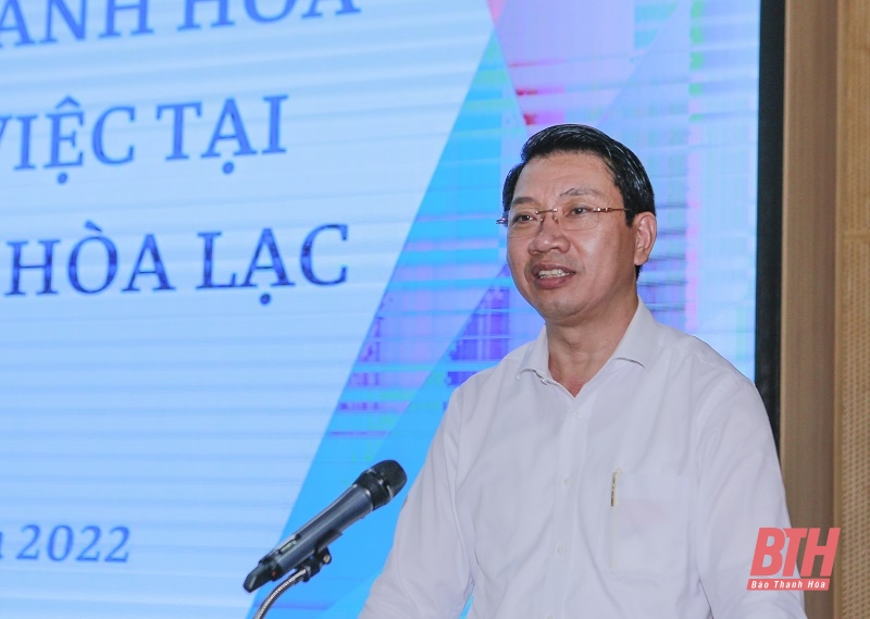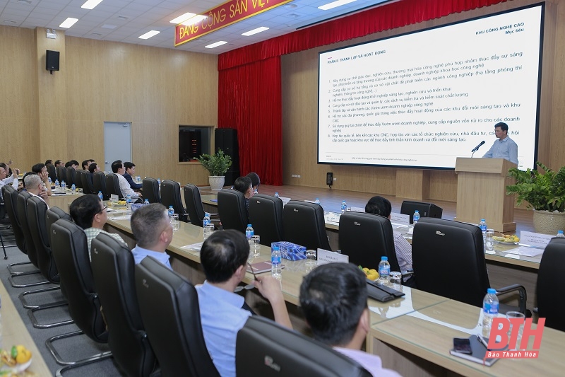 Cũng tại buổi làm việc, Phó Chủ tịch UBND tỉnh Lê Đức Giang đã thông tin về tình hình phát triển và kế hoạch xây dựng đề án khu CNC tỉnh Thanh Hóa. Theo đó, tỉnh Thanh Hóa cũng đã hình thành Khu CNC Lam Sơn – Sao Vàng để thu hút đầu tư phát triển CNC vào khu vực phía Tây của tỉnh. Phó Chủ tịch UBND tỉnh Lê Đức Giang cũng khái quát tình hình phát triển kinh tế - xã hội, thu hút đầu tư và tiềm năng thế mạnh của tỉnh Thanh Hóa. Để phát triển kinh tế nhanh và bền vững, Thanh Hóa xác định phát triển công nghiệp nặng, nông nghiệp là nền tảng; công nghiệp năng lượng, công nghiệp chế biến, chế tạo và dịch vụ logistics là đột phá; du lịch là mũi nhọn; tập trung phát triển 4 trung tâm kinh tế động lực, 5 trụ cột tăng trưởng và 6 hành lang kinh tế. Thanh Hóa cũng ưu tiên kêu gọi đầu tư phát triển năng lượng tái tạo, vật liệu mới; phát triển sản xuất, chế biến nông lâm và thủy sản.