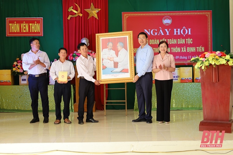 Nhân dịp này, đồng chí Lê Đức Giang, Phó Chủ tịch UBND tỉnh đã tặng cán bộ và Nhân dân khu dân cư Yên thôn bức ảnh Chủ tịch Hồ Chí Minh bắt tay Bác Tôn Đức Thắng - Hình ảnh cao đẹp của tình đoàn kết Nam - Bắc một nhà, biểu tượng thiêng liêng của khối đại đoàn kết toàn dân tộc Việt Nam; đồng thời trao 10 suất quà cho các gia đình có hoàn cảnh khó khăn trong khu dân cư; trao 50 triệu đồng hỗ trợ xây nhà đại đoàn kết cho gia đình ông Trịnh Văn Thuân.