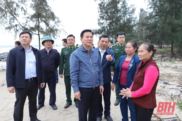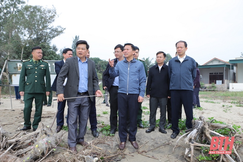 Kiểm tra thực địa tại điểm sạt lở, xâm thực bờ biển khu vực cửa Lạch Hới thuộc thôn Tân Xuân, xã Hoằng Phụ, Bí thư Tỉnh ủy Đỗ Trọng Hưng yêu cầu các sở, ban, ngành cần khẩn trương, không được chậm trễ, phải sớm triển khai dự án làm kè biển dài 1,5km kiên cố để xử lý khẩn cấp sạt lở nhằm bảo vệ an toàn tài sản, tính mạng của người dân.