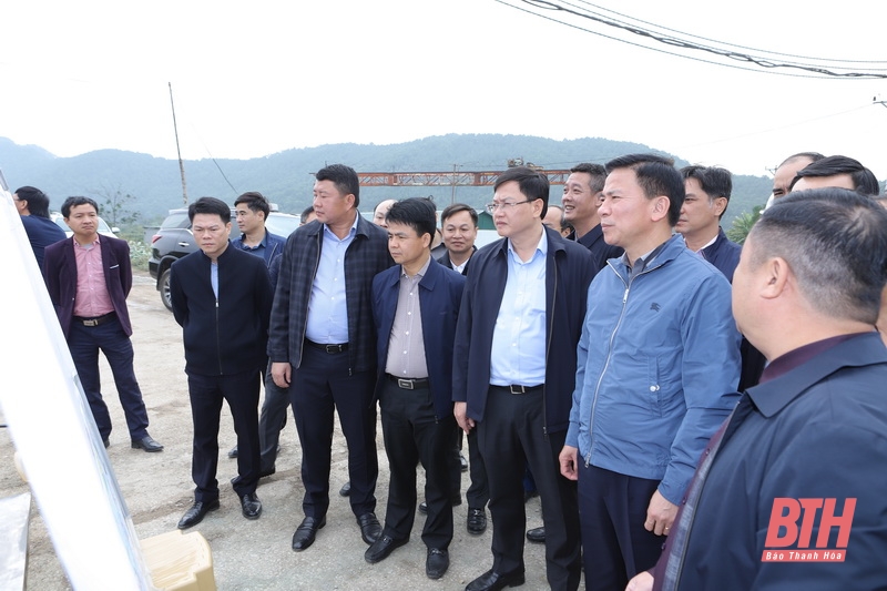 Đồng chí Bí thư Tỉnh ủy và đoàn công tác đã đi kiểm tra tiến độ thi công đường Thịnh Đông; cụm Công nghiệp Thái Thắng; đê sông Cung; điểm sạt lở, xâm thực bờ biển khu vực cửa Lạch Hới thuộc thôn Tân Xuân, xã Hoằng Phụ; tiến độ dự án Khu A Flamingo Linh Trường; dự án đường giao thông từ kênh Phúc Ngư đi Khu A Flamingo; điểm thi công gói thầu số 6, dự án đường ven biển đoạn Nga Sơn - Hoằng Hóa.