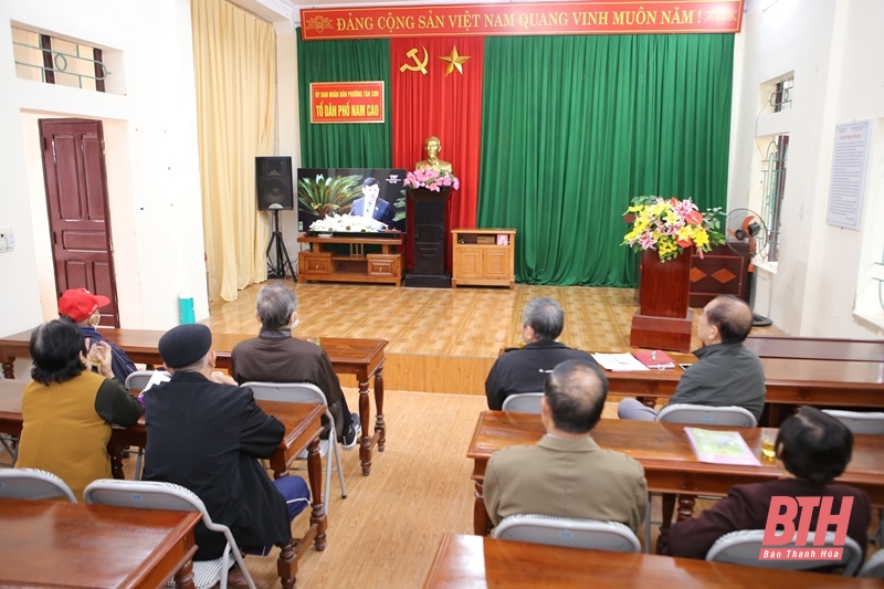 Cán bộ và Nhân dân Tổ dân phố Nam Cao, phường Tân Sơn (TP Thanh Hóa) theo dõi kỳ họp thứ 11, HĐND tỉnh khóa XVIII, nhiệm kỳ 2021-2026.