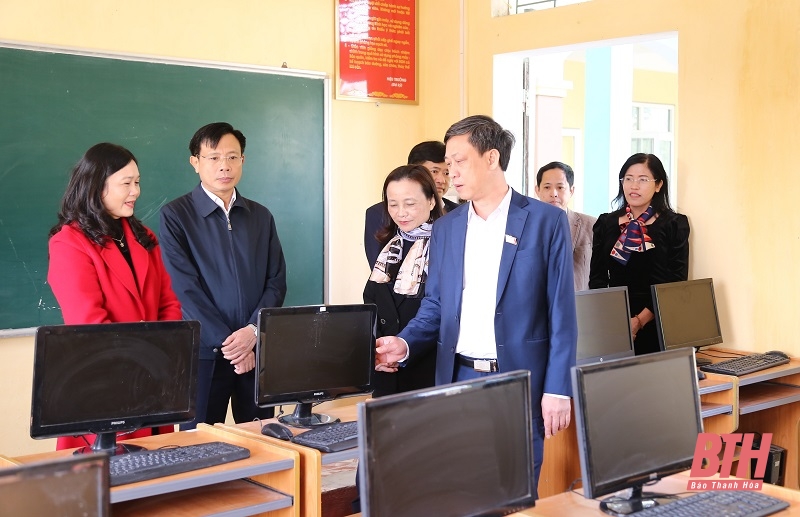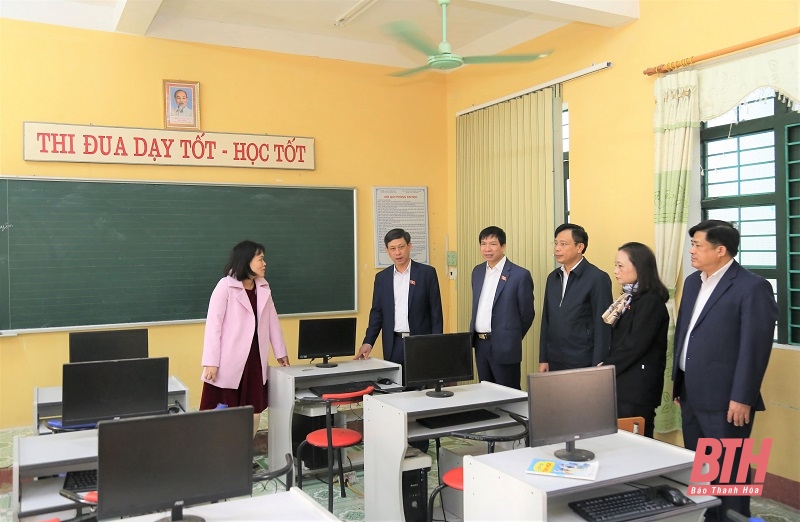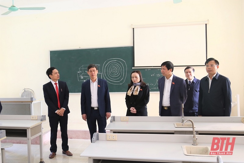 Trước khi làm việc với UBND huyện, đoàn đã đi kiểm tra, giám sát thực tế cơ sở vật chất, nắm bắt tâm tư, nguyện vọng của cán bộ, giáo viên (GV) trực tiếp tham gia giảng dạy thực hiện đổi mới chương trình, SGK tại Trường THPT Lương Đắc Bằng, THCS Thị trấn Bút Sơn và Trường Tiểu học Bút Sơn 1 (thị trấn Bút Sơn).