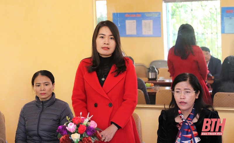 Đại diện lãnh đạo Trường Tiểu học Thị trấn Bút Sơn 1 phát biểu tại buổi giám sát.