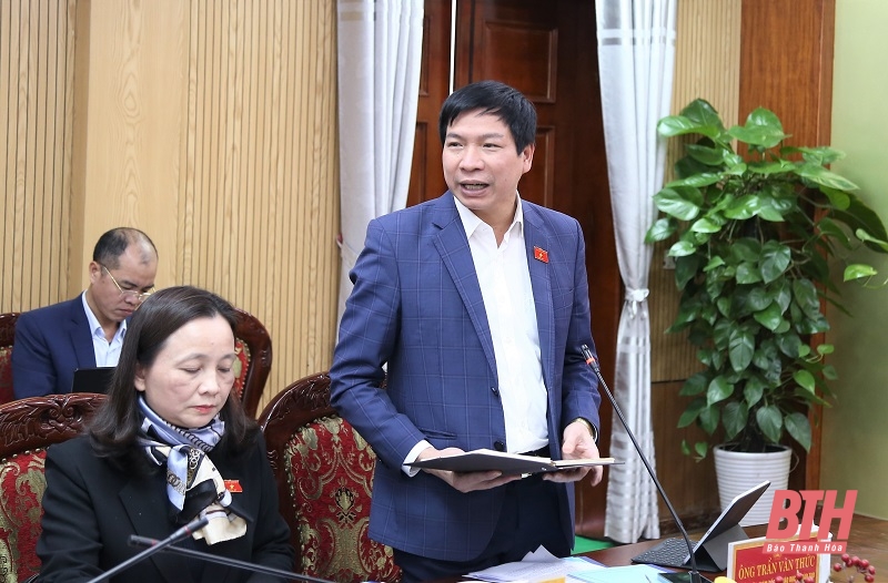 Phó Chủ tịch UBND huyện Hoằng Hóa Lê Văn Phúc phát biểu tại buổi giám sát.