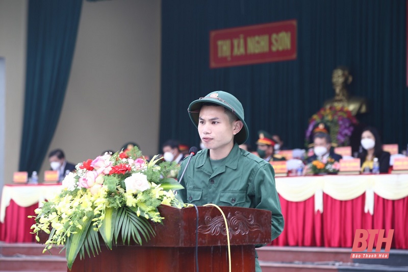 Phát biểu tại lễ giao, nhận quân, đại diện lãnh đạo thị xã Nghi Sơn bày tỏ mong muốn các tân binh luôn an tâm công tác, xác định rõ trách nhiệm người chiến sĩ cách mạng, không ngừng học tập và rèn luyện, phát huy tốt truyền thống của quê hương, noi gương các thế hệ cha, anh đi trước, cống hiến sức lực, trí tuệ cho sự nghiệp xây dựng và bảo vệ Tổ quốc.