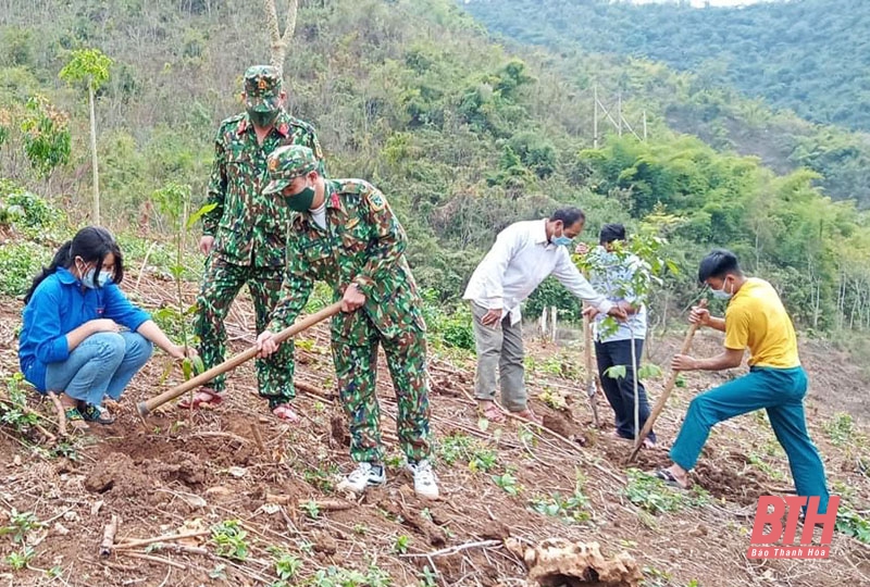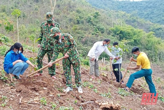 Cán bộ, chiến sĩ Đồn Biên phòng Pù Nhi (Mường Lát) phối hợp với chính quyền và người dân ra quân hưởng ứng “Tết Trồng cây đời đời nhớ ơn Bác Hồ” Xuân Nhâm Dần 2022.