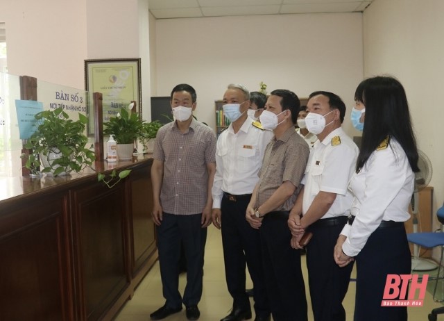 Đồng chí Lê Quang Hùng, Ủy viên Ban Thường vụ, Chủ nhiệm Ủy ban Kiểm tra Tỉnh ủy cùng đoàn giám sát kiểm tra bộ phận một cửa tại Cục Thuế tỉnh Thanh Hóa.