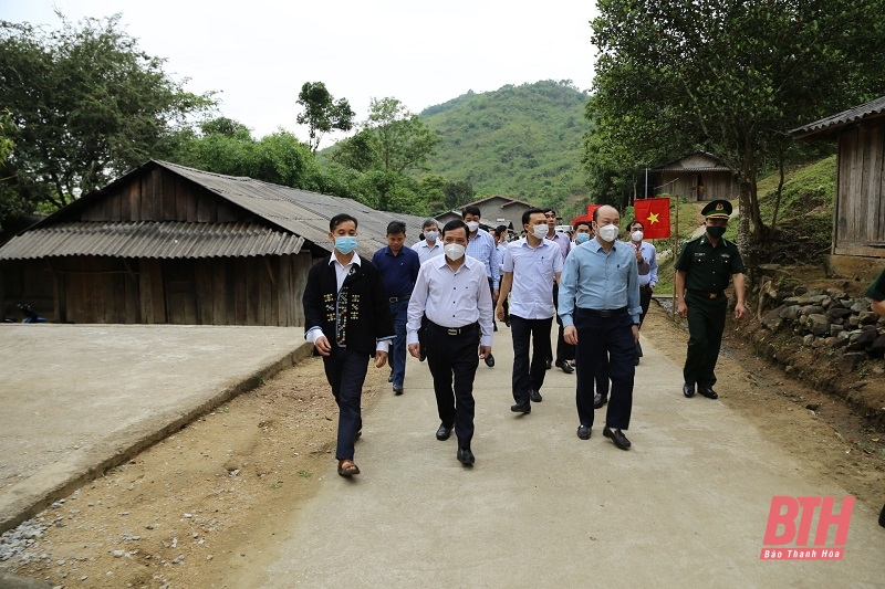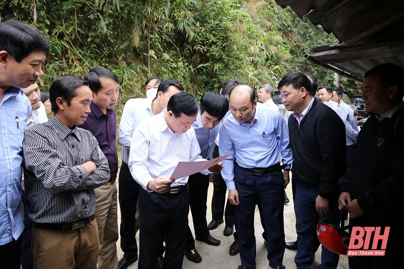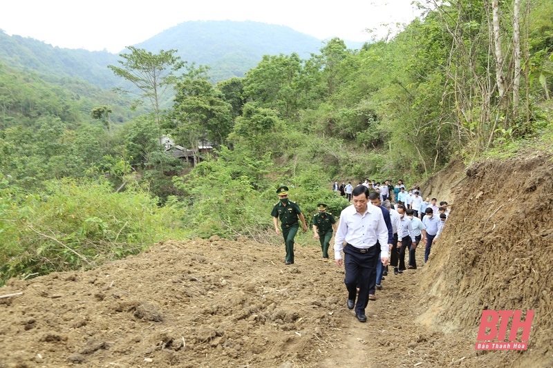 Đồng chí Lại Thế Nguyên, Phó Bí thư Thường trực Tỉnh ủy, Trưởng đoàn ĐBQH tỉnh, Trưởng Ban Chỉ đạo 901 và đoàn công tác khảo sát tại bản Bóng, xã Mường Chanh.