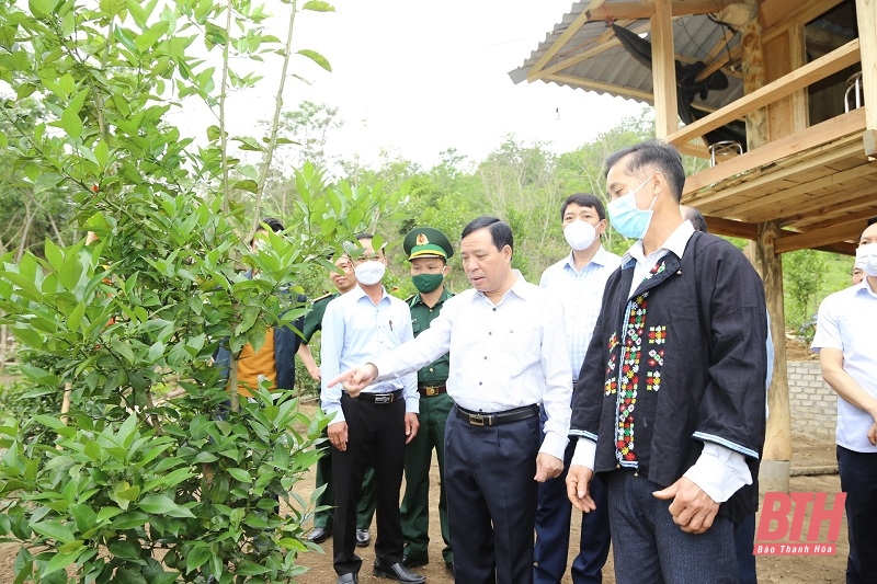 Đồng chí Lại Thế Nguyên, Phó Bí thư Thường trực Tỉnh ủy, Trưởng đoàn ĐBQH tỉnh, Trưởng Ban Chỉ đạo 901 và đoàn công tác khảo sát mô hình trồng cây gai xanh tại xã Mường Chanh.