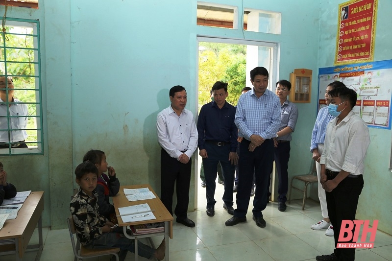 Đồng chí Lại Thế Nguyên, Phó Bí thư Thường trực Tỉnh ủy, Trưởng đoàn ĐBQH tỉnh, Trưởng Ban Chỉ đạo 901 và đoàn công tác khảo sát thực tế điểm lẻ trường học ở bản Trung Thắng, xã Mường Lý.