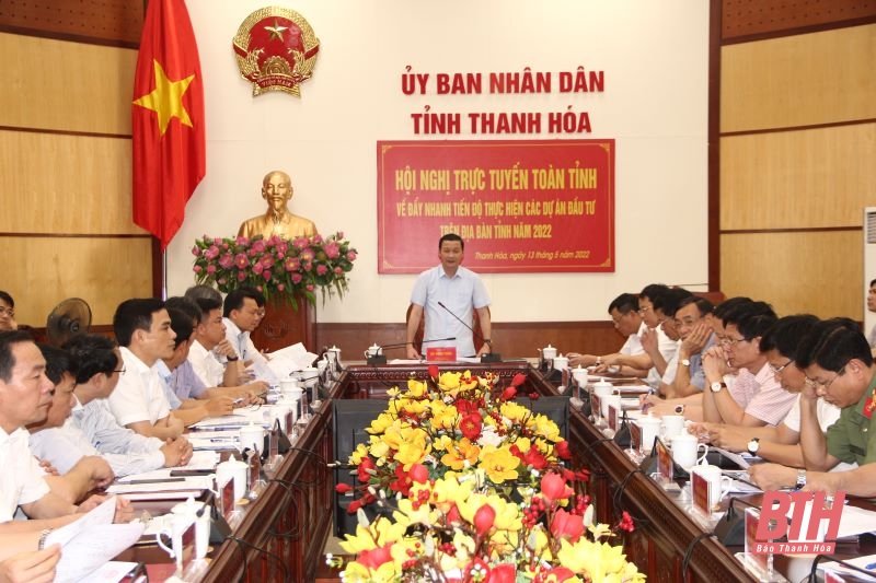 Chiều 13-5, UBND tỉnh Thanh Hoá đã tổ chức hội nghị trực tuyến với các huyện, thị xã, thành phố nhằm tháo gỡ khó khăn, vướng mắc, đẩy nhanh tiến độ thực hiện các dự án đầu tư công năm 2022 trên địa bàn tỉnh. Đồng chí Đỗ Minh Tuấn, Phó Bí thư Tỉnh ủy, Chủ tịch UBND tỉnh chủ trì hội nghị.