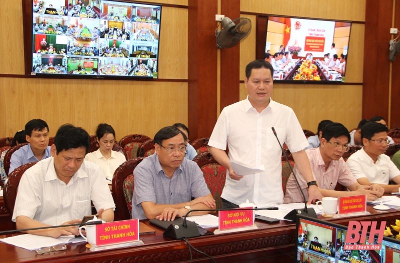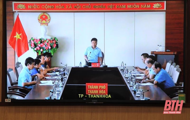 Đại diện UBND TP Thanh Hóa phát biểu tại điểm cầu TP Thanh Hóa. (Ảnh chụp màn hình).