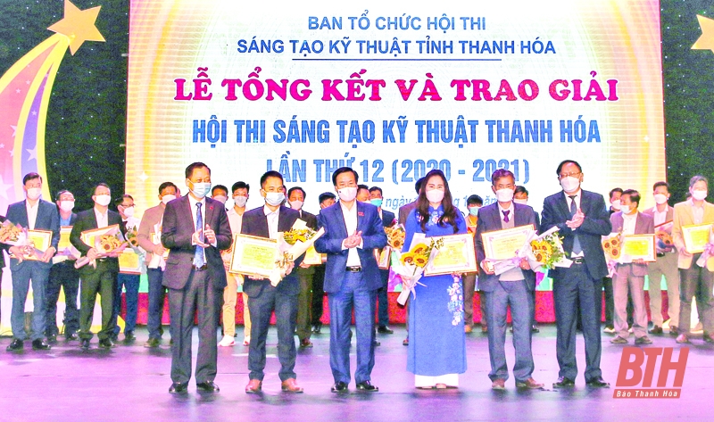 Ban tổ chức hội thi trao giải cho các tác giả, nhóm tác giả đoạt giải tại Hội thi sáng tạo kỹ thuật Thanh Hóa lần thứ 12 (2020-2021). Ảnh: Trần Hằng