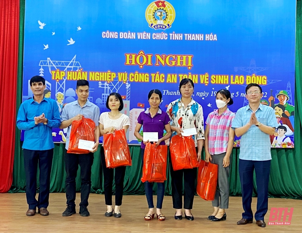 Nhân Tháng công nhân năm 2022, Công đoàn Viên chức tỉnh đã tặng 6 suất quà cho 6 đoàn viên của Công ty CP In Báo Thanh Hoá bị ảnh hưởng bởi đại dịch COVID-19.