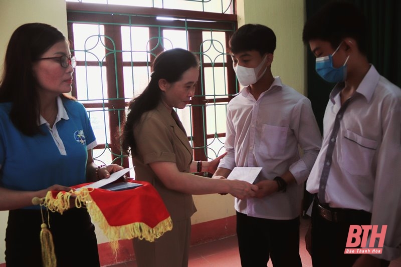 Đồng chí Ngô Thị Hồng Hảo, Tỉnh ủy viên, Chủ tịch Hội LHPN tỉnh trao quà và kinh phí đỡ đầu cho trẻ mồ côi huyện Nga Sơn.