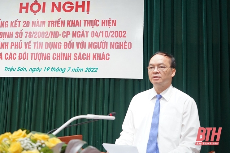 Ngày 19-7, UBND huyện Triệu Sơn đã tổ chức hội nghị tổng kết 20 năm triển khai thực hiện chính sách tín dụng ưu đãi đối với người nghèo và các đối tượng chính sách khác theo Nghị định số 78/2002/NĐ-CP, ngày 4-10-2002 của Chính phủ.