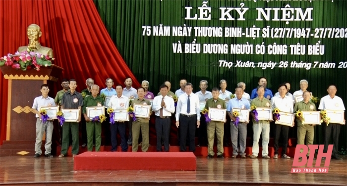 Lãnh đạo huyện Thọ Xuân khen thưởng cho người có công tiêu biểu trên địa bàn huyện dịp kỷ niệm 75 năm Ngày Thương binh - Liệt sĩ.