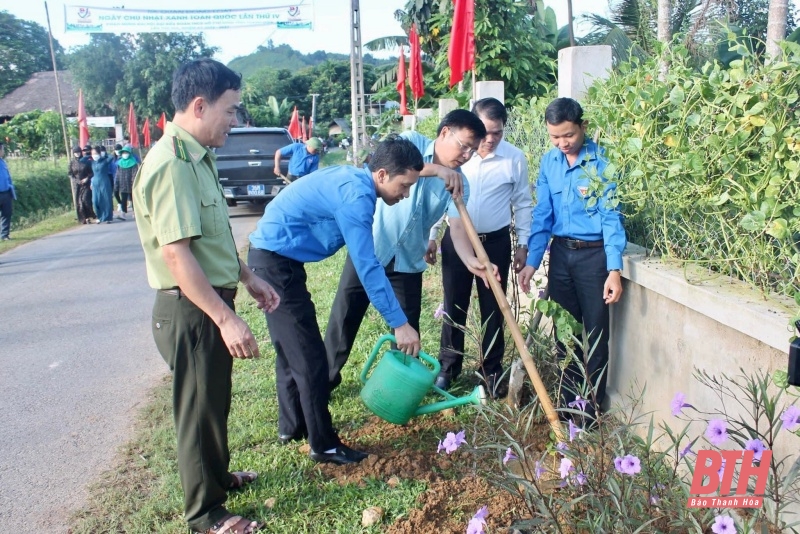 Đông đảo cán bộ, đoàn viên, thanh niên tham gia hưởng ứng Ngày Chủ nhật xanh ở huyện Lang Chánh.