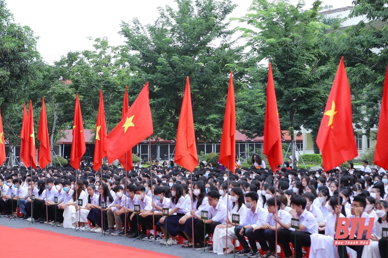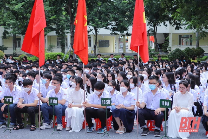 Các em học sinh Trường THPT chuyên Lam Sơn dự Lễ khai giảng năm học 2022 -2023.