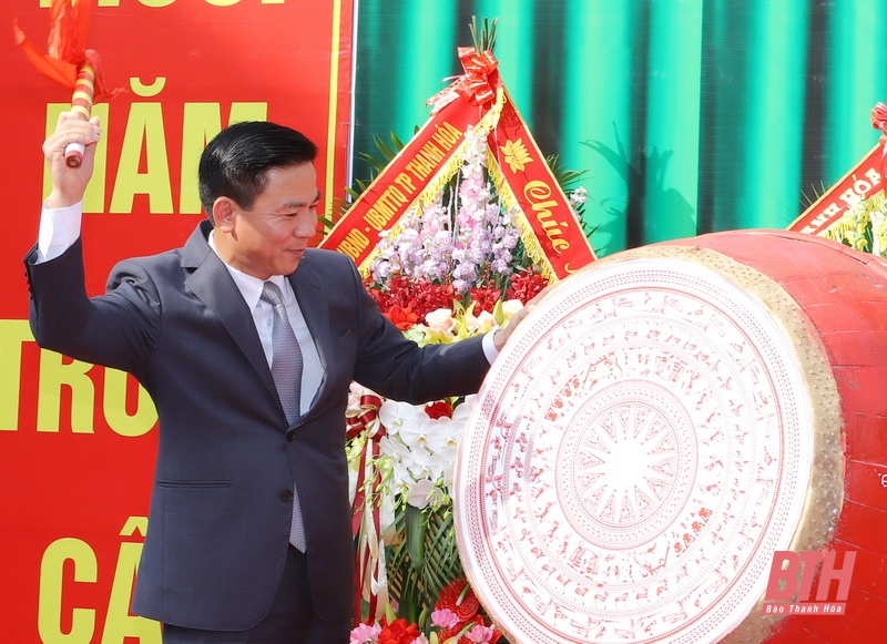 Đồng chí Bí thư Tỉnh ủy Đỗ Trọng Hưng đánh trống khai giảng năm học 2022 -2023 tại Trường THPT chuyên Lam Sơn.